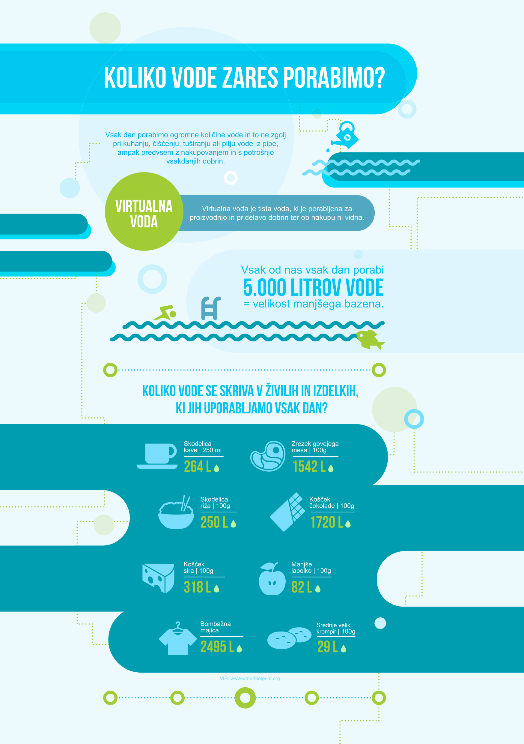 Ali ste vedeli, da vsak od nas vsak dan porabi pet tisoč litrov vode, kar je enako velikosti manjšega bazena.