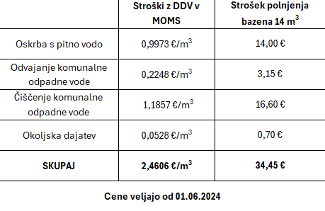 34,45€ z DDV znaša STROŠEK POLNJENJA BAZENA IZ DOMAČE PIPE (preko vodomera):